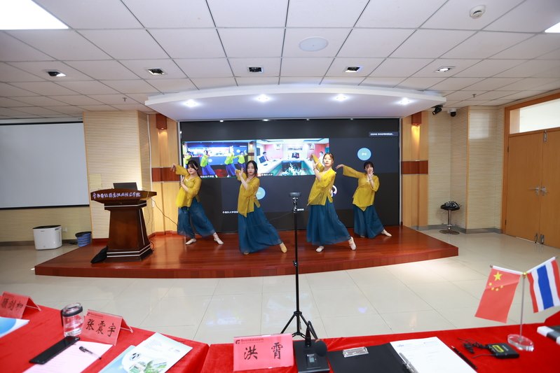 之後雙方進行了線上合作交流協議簽署,張震宇副院長代表我(wǒ)校和泰(tài)國格勒大(dà)學張騰主任互贈(zèng)禮物,格樂大學學子和我校學(xué)子還分別(bié)進行了特色舞蹈表演。最後,全體參會人員通(tōng)過雲端合影留念。