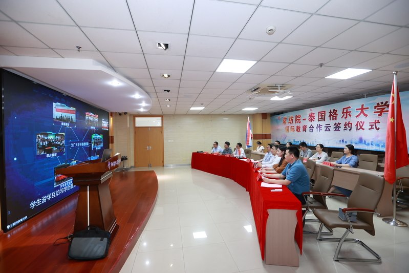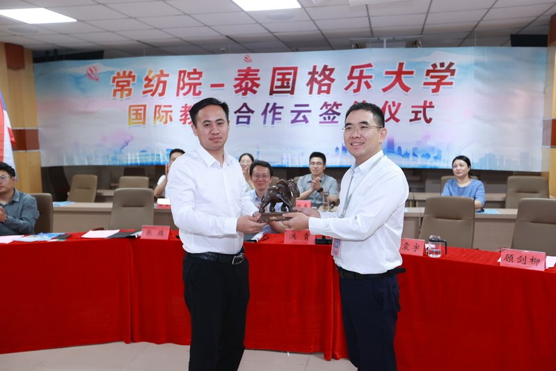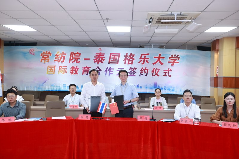 6月16日北京時間14:00、泰國(guó)時間(jiān)13:00,我校在1750會議室(shì)舉行了常紡院-泰國格樂大學國際教育合作雲簽約儀式。我校(xiào)黨委副書記、院長洪霄,黨委委員、副院長張震(zhèn)宇通過騰訊會議直播的形式與泰國格樂(lè)大學校長楊金泉、管理委員會委員李黎光和中國國際語言文化學院院長羅(luó)勇等進(jìn)行了線上(shàng)合作(zuò)交流和協議簽署。參加儀式的還有泰國格樂大學(xué)國際學院院長助理張騰、常紡院(yuàn)外事辦主任顧劍柳、副(fù)主任王磊、黨政辦主任趙振勇、人事處處長林潔、科技處處長李愛紅、教務處(chù)副處長祝燕(yàn)芳及學工處副處長李聖峰。