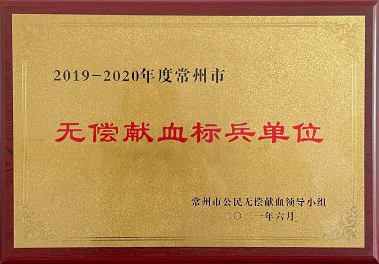 近日,常州市公(gōng)民無償獻血領導小組下發(fā)《關於通報表(biǎo)揚2019-2020年度常州市無償獻血先進集體的通知》,我校再次獲得“常州市無償獻血標(biāo)兵單位(wèi)”榮譽稱號。