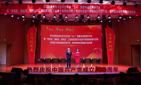 7月13日,由共青團江蘇省委聯合江蘇省委教(jiāo)育工委、江蘇省委黨史工作辦公室共同主辦的學習宣傳(chuán)貫徹習近平總書記“七一(yī)”重要講話精神學習會暨“學(xué)黨史、強信念、跟黨走”江蘇高校百校萬名團幹部思政技能大比武(wǔ)專職團幹部和兼掛(guà)職(zhí)團幹部(bù)、青年教師專項賽在(zài)南(nán)京師範大學仙林校區(qū)舉行。我校青年教師高(gāo)嚴獲青年教師專項賽一等獎,為常州高(gāo)校唯一獲此獎項的青年教師(shī)。