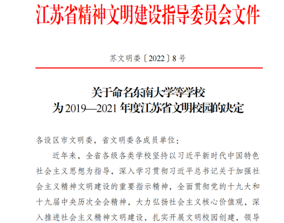 近日,江(jiāng)蘇省精神文明建設指導委(wěi)員會印發(fā)了《關於命名東南大學等學校2019—2021年度(dù)江蘇省文明校園的決定》(蘇文明委[2022]8號),常州信息職業技(jì)術學院榮獲“2019—2021年度江蘇省文明校園”,這是學校自2013年起連續10年獲得此項榮譽(yù)。