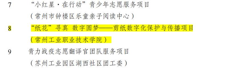 近日(rì),在團省委、省誌願(yuàn)者協會聯合(hé)開展的2021年度全省青年誌願者(zhě)行動評選表彰中,常州工業職業技術學院藝術創意學院的《“紙花”尋真 數字(zì)圓夢——剪紙數字化保護與傳播》榮獲江蘇省優秀青年誌願(yuàn)服務(wù)項目。