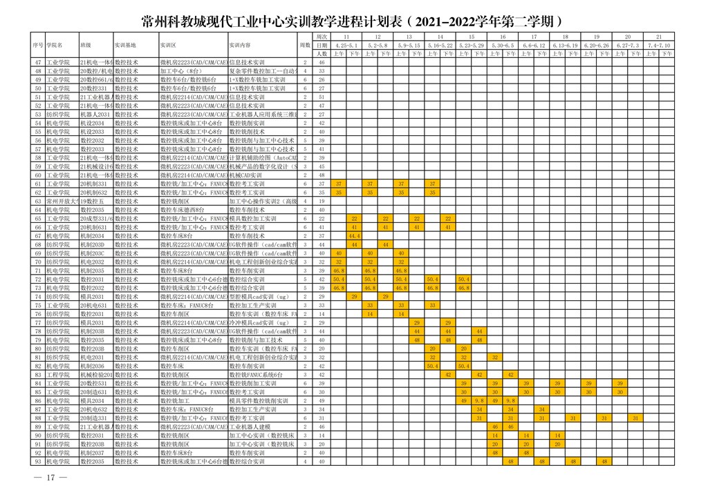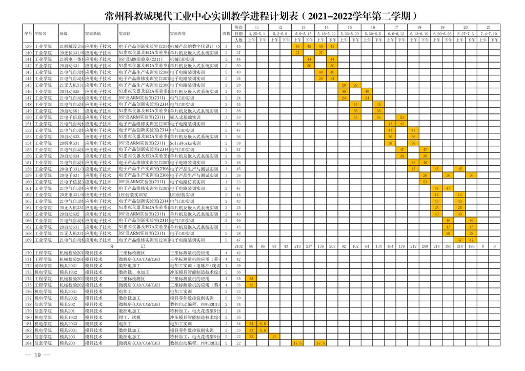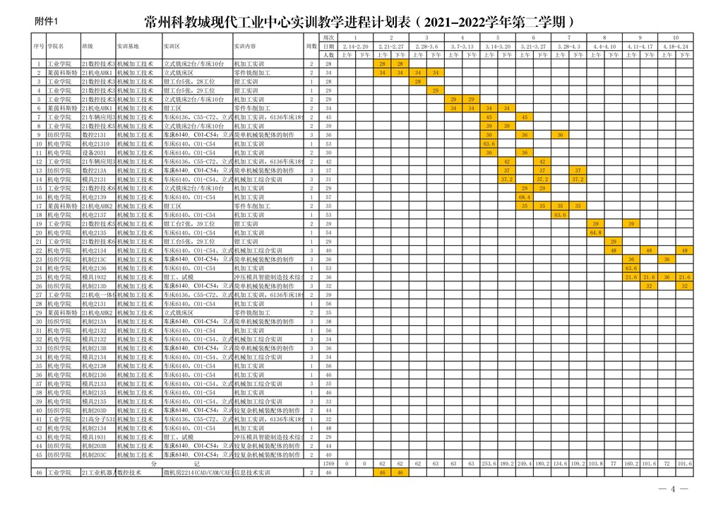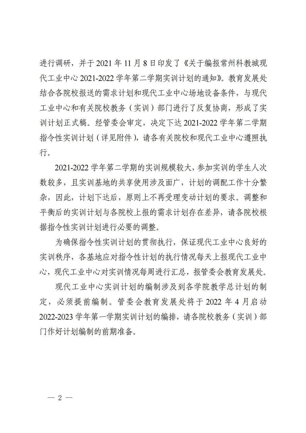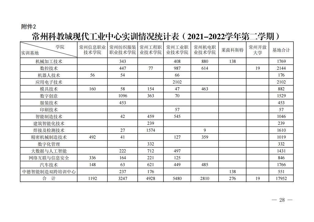 常州市高等職(zhí)業教育(yù)園區管理委員會關於下達常州科教城現代工業中心2021-2022學年第二學期指令性實訓計劃的通知