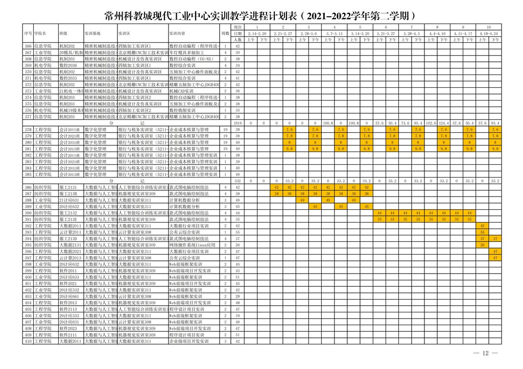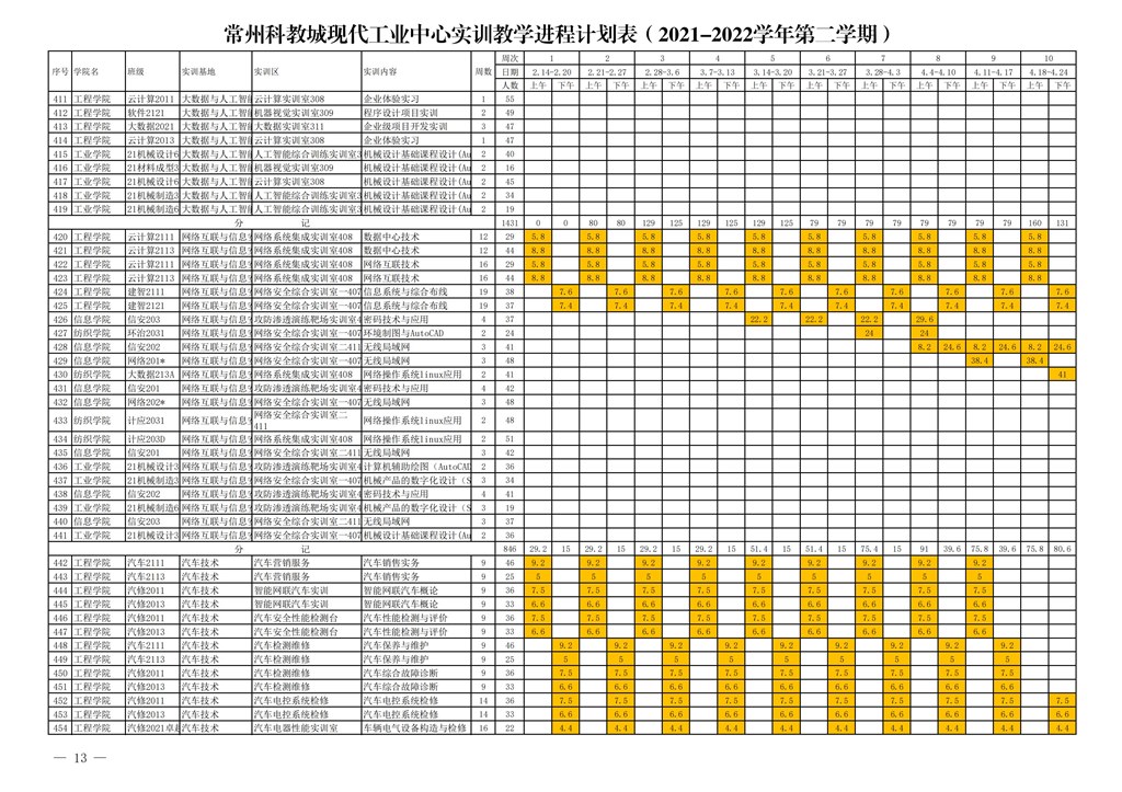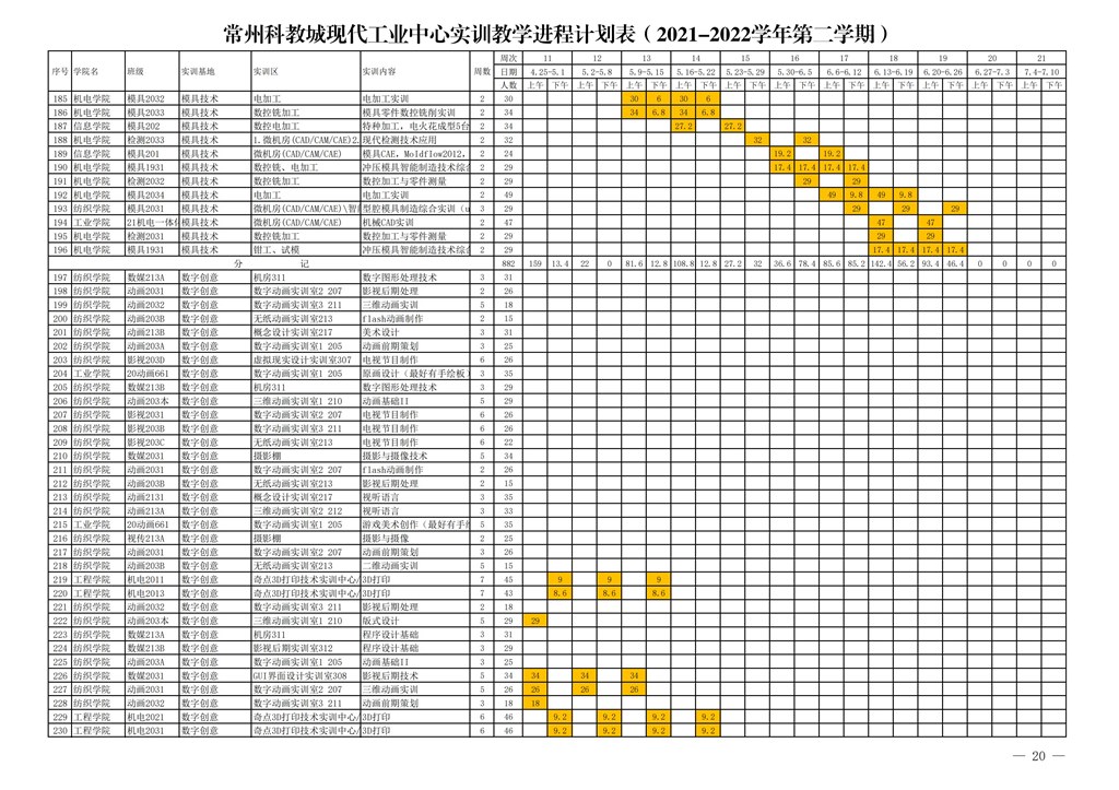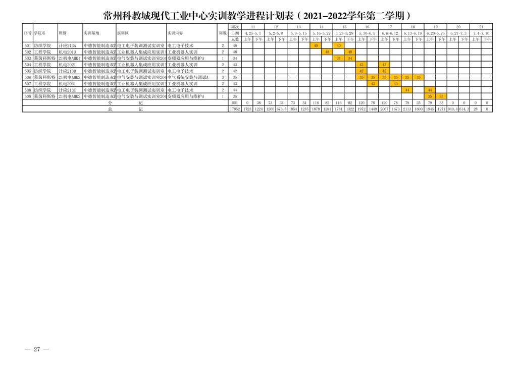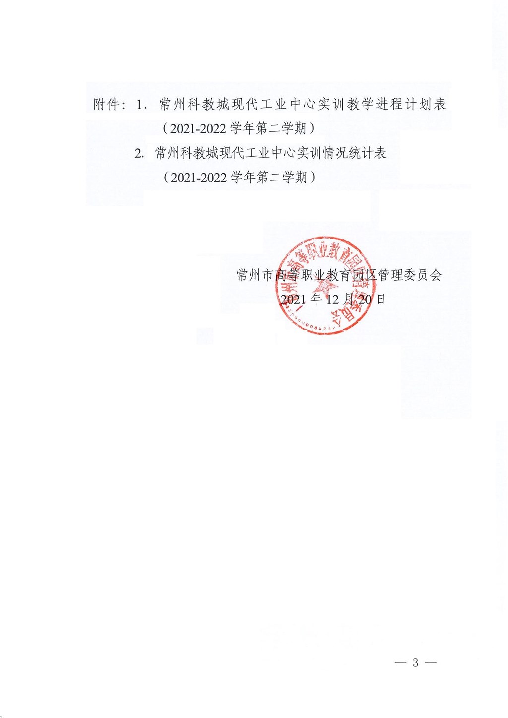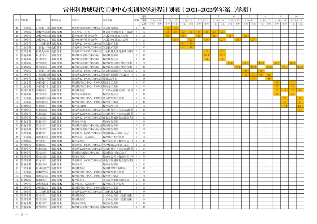 常州市高等職(zhí)業教育(yù)園區管理委員會關於下達常州科教城現代工業中心2021-2022學年第二學期指令性實訓計劃的通知