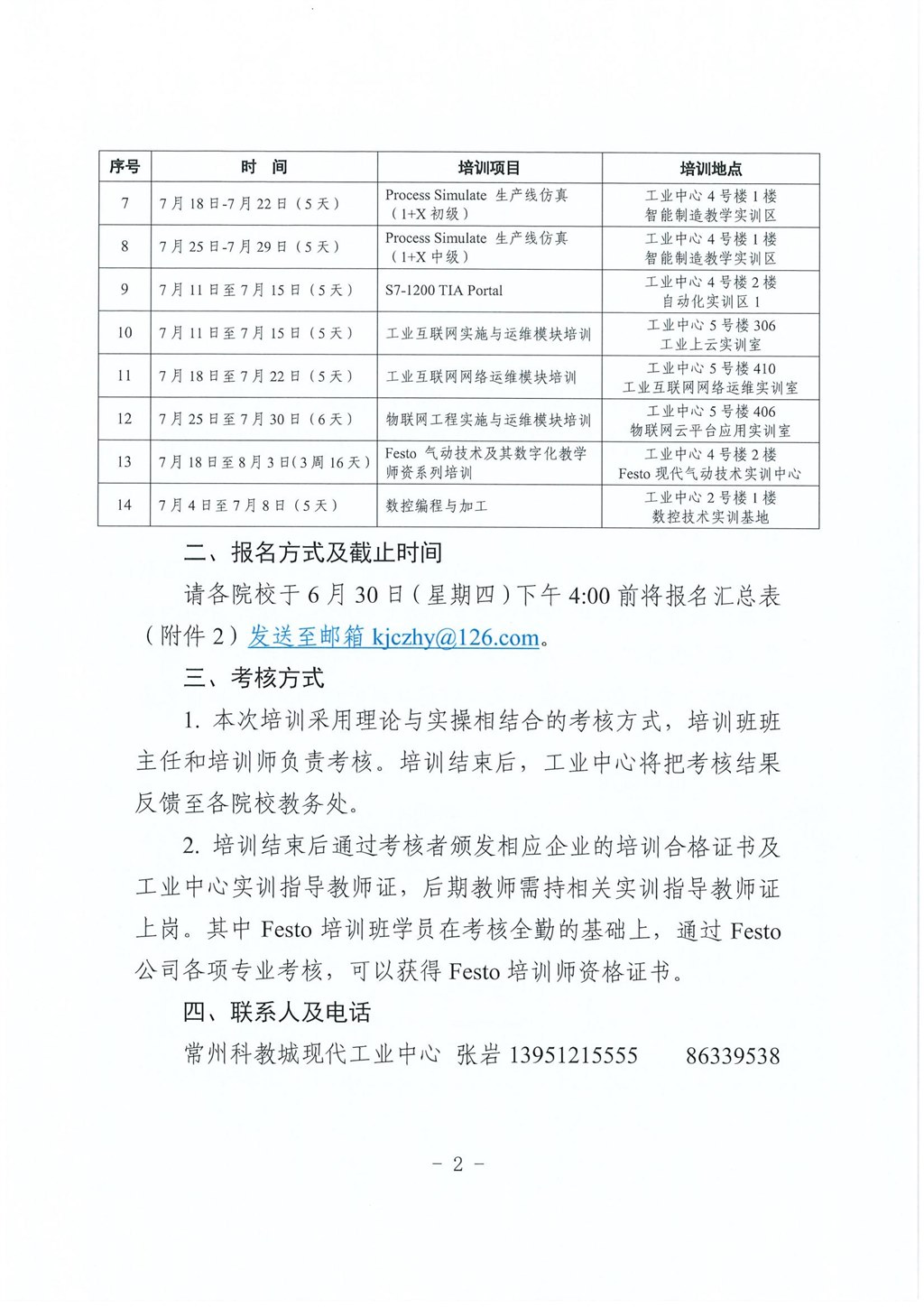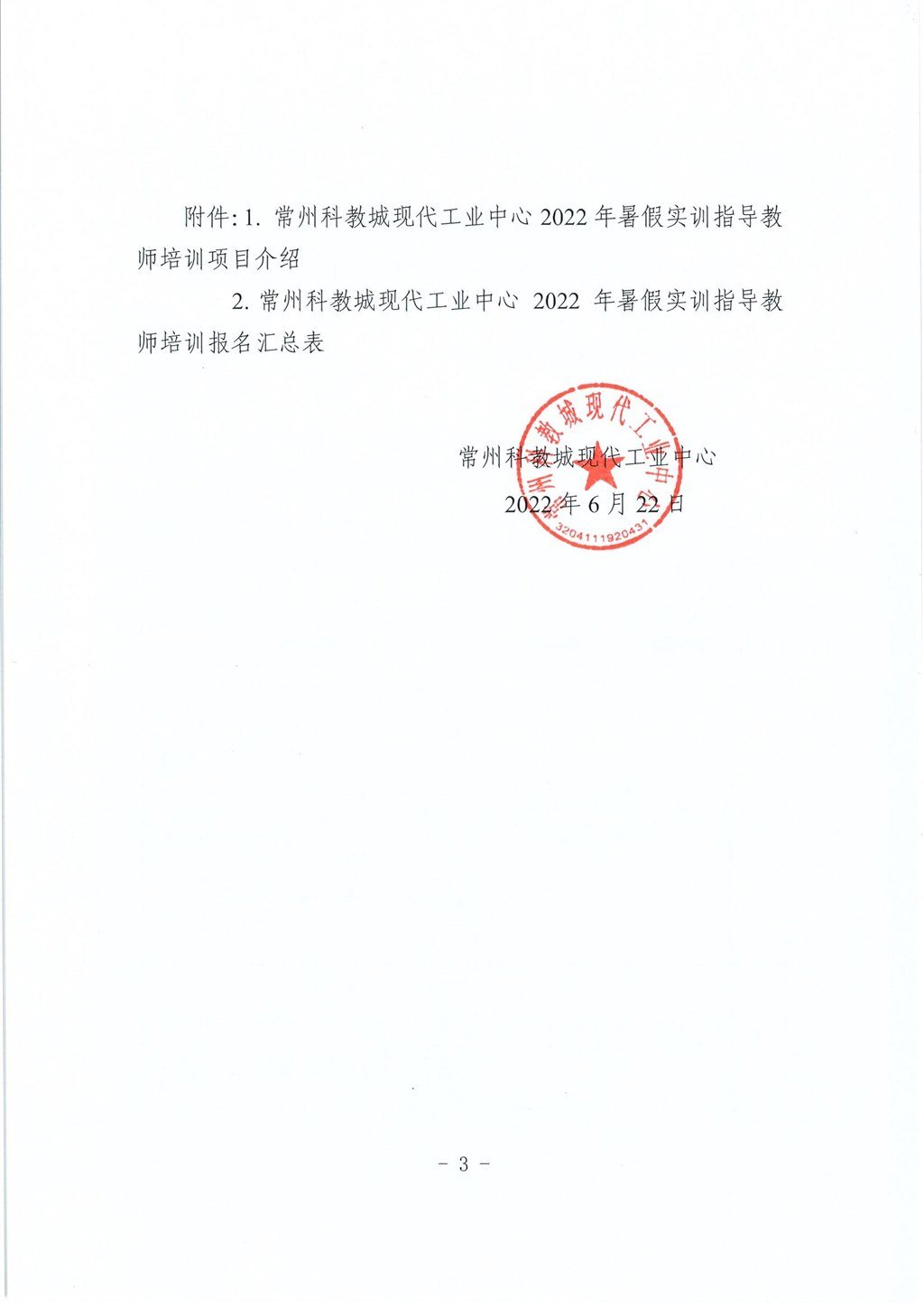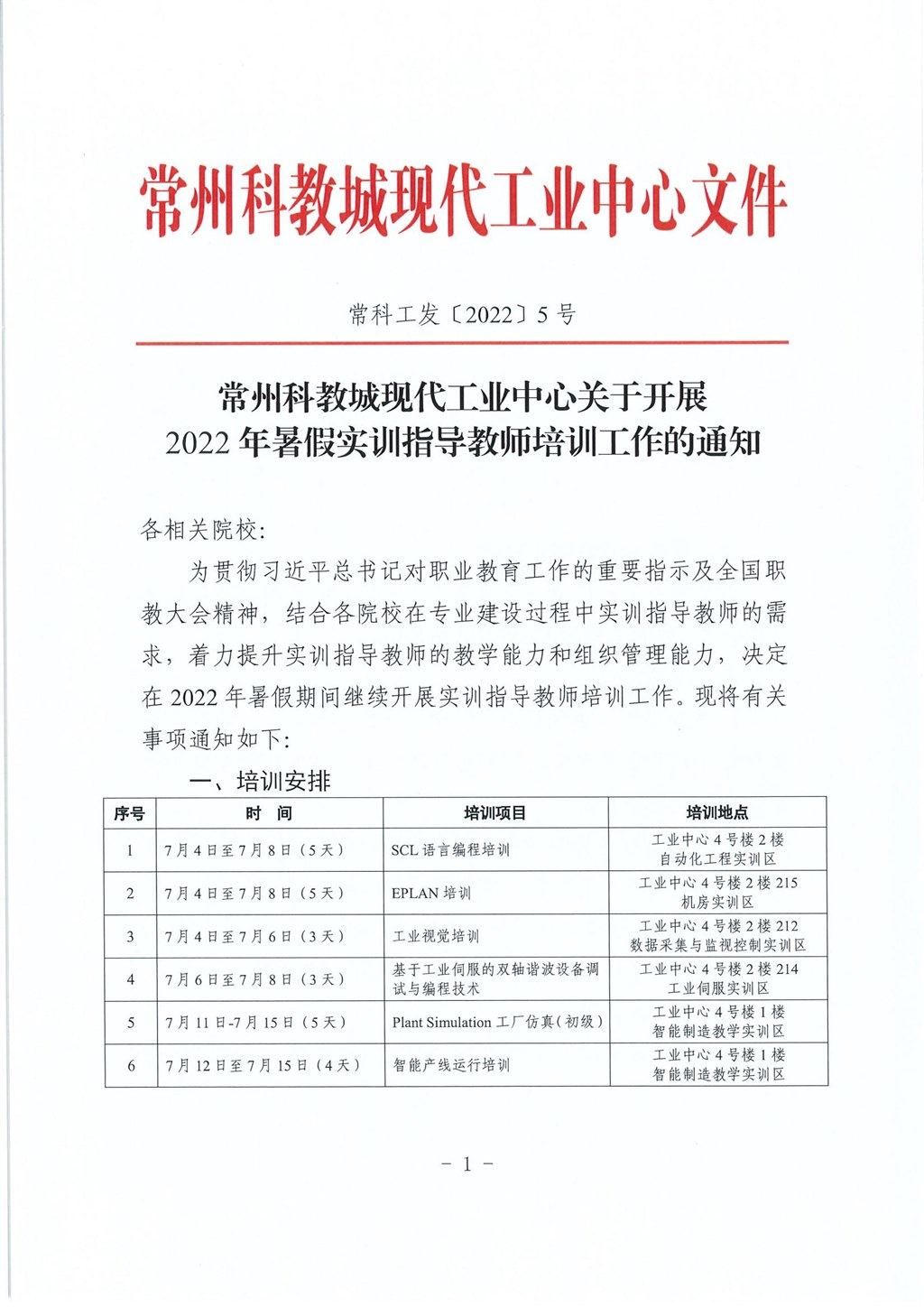 常州(zhōu)科教(jiāo)城現代工業中心關於開(kāi)展2022年暑假實訓指導教師培訓工作的通知