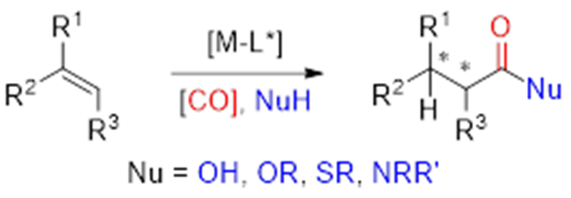 手性羧酸及其衍生物是有機化學中(zhōng)的一類重(chóng)要化合(hé)物,廣(guǎng)泛存在(zài)於醫藥(yào)、農藥和精細化學品等(děng)中(zhōng),烯烴的不對稱氫羰基化反應(yīng)可為這類化合物提供一條潛在高效快捷的合(hé)成途徑,得到學術(shù)界和工業界的廣(guǎng)泛關注,但(dàn)也極具(jù)挑戰性。自七十年代以來,眾多化學家在該領域做了持久而深入的研(yán)究。該文章係統總(zǒng)結了半(bàn)個世紀以來,過渡金屬催化的烯烴的不對稱氫羧化、氫酯化和氫(qīng)酰胺化反應的研究進展、反應機理、應用實例以及該領域現階段仍(réng)然麵臨的問題和挑戰等,為不對稱氫羰基化反應的(de)後續研究提供了參考(kǎo)。史一安團隊在烯烴的氫羰基化反應,包括不(bú)對稱(chēng)氫酯化和氫羧化(huà)反(fǎn)應進行了長達十年的係統而(ér)深入的研(yán)究。團隊研究工作得到(dào)了常州大學和國家自然科學基金等的(de)大力支持。