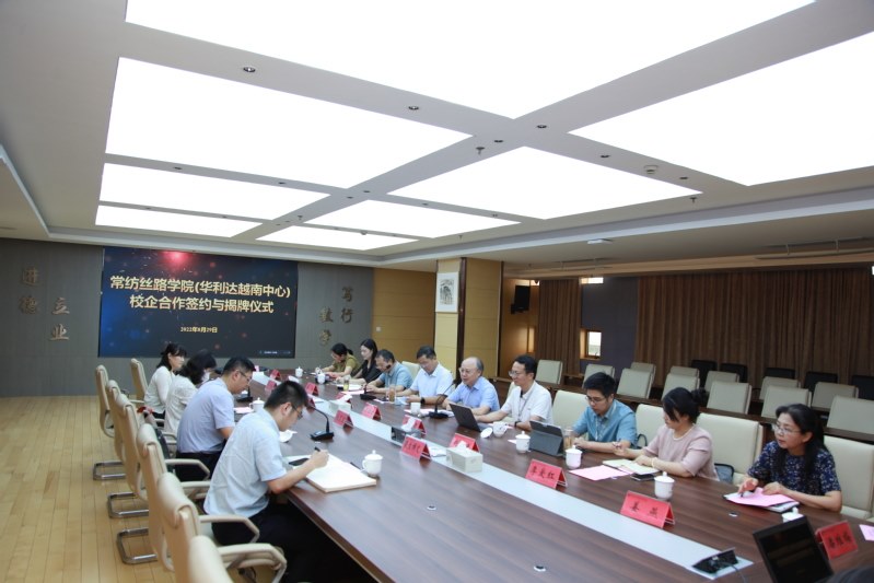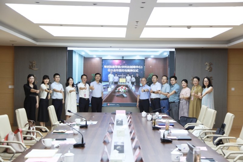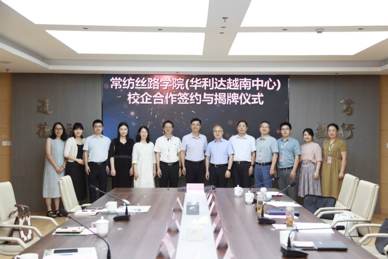 北京時(shí)間2022年8月29日14:00,越南河內時間2022年8月29日13:00,常紡(fǎng)絲路學院(華利達越南中心)校(xiào)企合作簽約與揭牌儀式在常州紡(fǎng)織服裝職業技(jì)術學院1號樓1646會議室舉行。華利達集團黨委副(fù)書(shū)記、副總經理錢震宏、華利達(越南)服裝責任有限公司副總經理高海燕、華利達服裝科技產業園人力資源部經理梁生(shēng)博文及華利達服裝集團有限(xiàn)公司招聘培訓部經理陳(chén)雲楠出席現場會議,華利達(越南)服裝責任有限公司總經理趙瑋晶、華利達太平服裝有限公司總經理杜麗萍、華利達(廣寧)服裝責任有限公司總經(jīng)理潘(pān)卉(huì)南、華利達(越南)服裝責任有限公司人力資源部經理何國傑、人力資源部副經(jīng)理陳氏梅和華利達(海(hǎi)河)服裝責任有限公司行(háng)政人事(shì)部經(jīng)理高景在越南通過騰訊會議線上參會。學校黨(dǎng)委書記吳訪升,校黨(dǎng)委副書記、院(yuàn)長洪霄,校黨委委員、副院長張文明,黨政辦主任趙振勇,教務(wù)處處長夏冬,校企合作(zuò)處處長李愛紅,繼續教育(yù)學院院長(zhǎng)薑燕,外事辦主任顧劍柳,服裝學院院長袁紅萍和(hé)副院長潘維梅參加了會議,會議由顧劍柳主持。