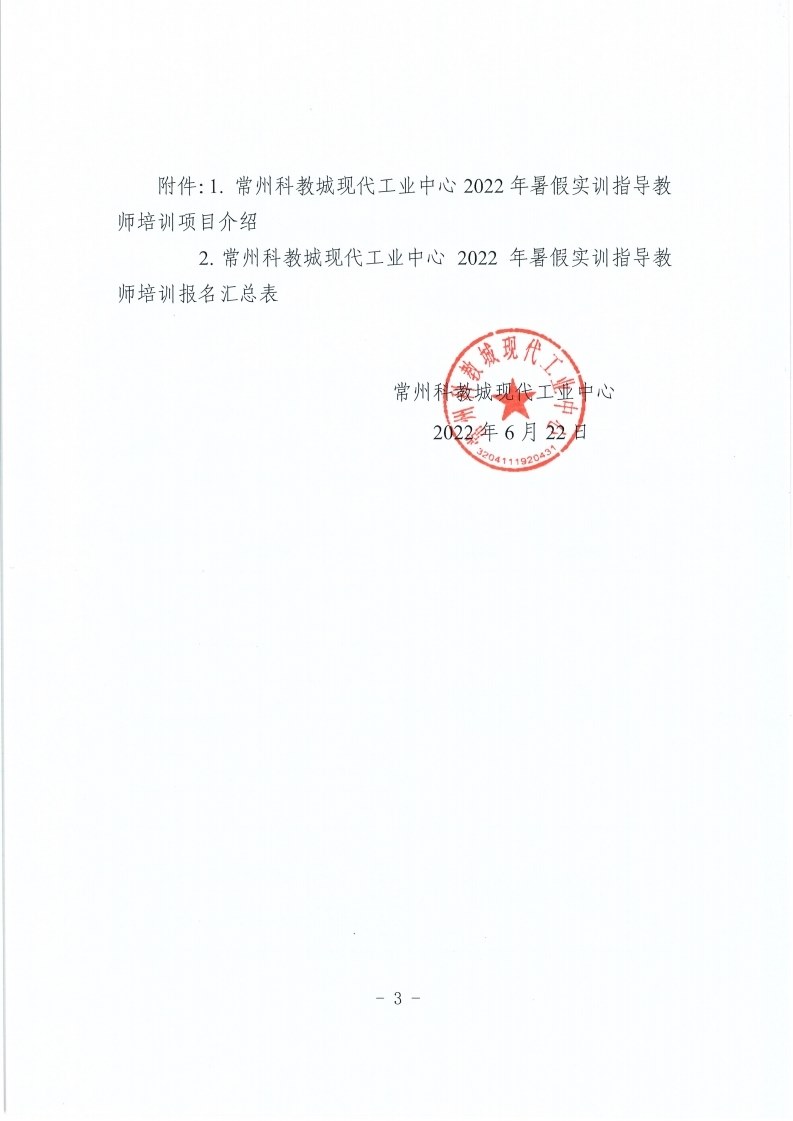 常州科教城現代工業中心關於開展2022年暑假實訓指導教師培訓工作的通知
