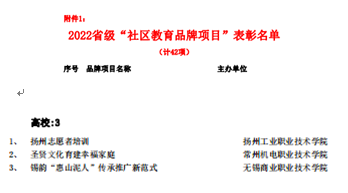 近日,江蘇省成人教育協會公布2022年省級(jí)“社區教育(yù)品牌項目”表彰名單,由常州機電職業技術學院(yuàn)選送的“聖賢(xián)文化育建幸福(fú)家(jiā)庭”項(xiàng)目成功入選(高校僅三項)。