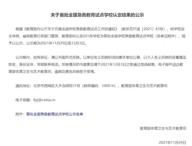 近日,教育部公(gōng)布了《關於首批全國急救教(jiāo)育試(shì)點學校認定結果的公示》,我校成功入選首批全國急救教(jiāo)育試點學(xué)校,全省共六所學校入選,其中高職院校(xiào)兩所。