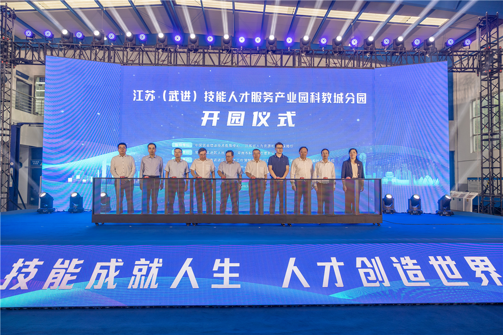 金秋具勢(shì),合(hé)創未來。9月28日上午,江蘇(武進)技能人才服(fú)務產(chǎn)業園(yuán)科教城分(fèn)園開園儀式在(zài)常州科(kē)教城現代工業中心(xīn)舉行。本次活動由武進區人民政府與常(cháng)州市科(kē)教城管理委員(yuán)會共同(tóng)主辦,中國就(jiù)業培訓技術(shù)指導中心黨委副書記葛恒(héng)雙,江(jiāng)蘇省人力資源(yuán)和(hé)社會保障廳(tīng)副廳長顧潮,市委常委、武(wǔ)進區委書記、科教城(chéng)黨工委書記喬俊傑出席活動,省人社廳、市人社局、市科教城、武進區及部分駐常高校領導及相關企業一同參加。