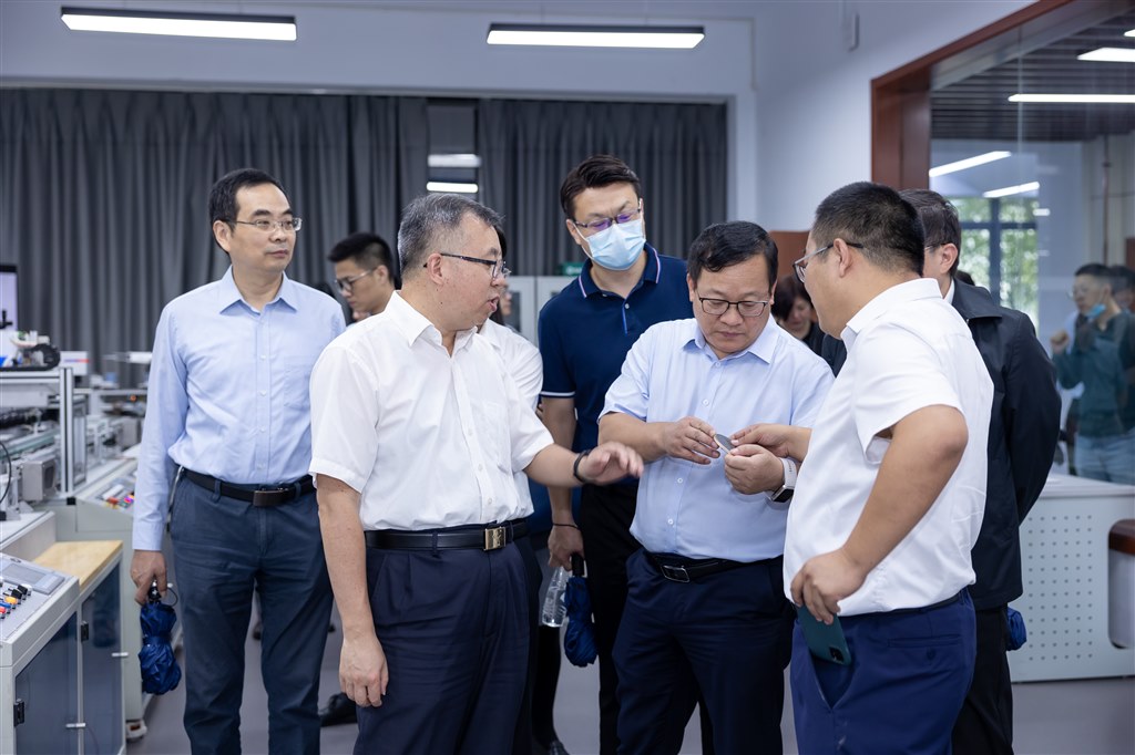 活動中,葛恒雙書記、顧潮廳長一行參觀了現代工業中心智能製(zhì)造實訓基地(dì)與中(zhōng)德智能製造(zào)雙(shuāng)跨中心,肯(kěn)定了中心聯合(hé)共建(jiàn)、統籌管理、內外開放、充分共享的建設理(lǐ)念,認為中心實訓設備先(xiān)進、管理經驗豐富。顧潮廳長在參觀過程中還仔細詢問了中(zhōng)心(xīn)的經費來源、實訓培訓(xùn)人數等,在看到中德智能製(zhì)造雙跨中心的三間AHK實訓專用考證室時饒有興趣的說:“省人(rén)社廳剛發布(bù)通知,AHK的證書比照認定為國內職業技能等級二級(技師)。”他鼓勵(lì)工業中心利用現有成熟條(tiáo)件,積(jī)極申報省人社廳的(de)高技能人才公共實訓基地。