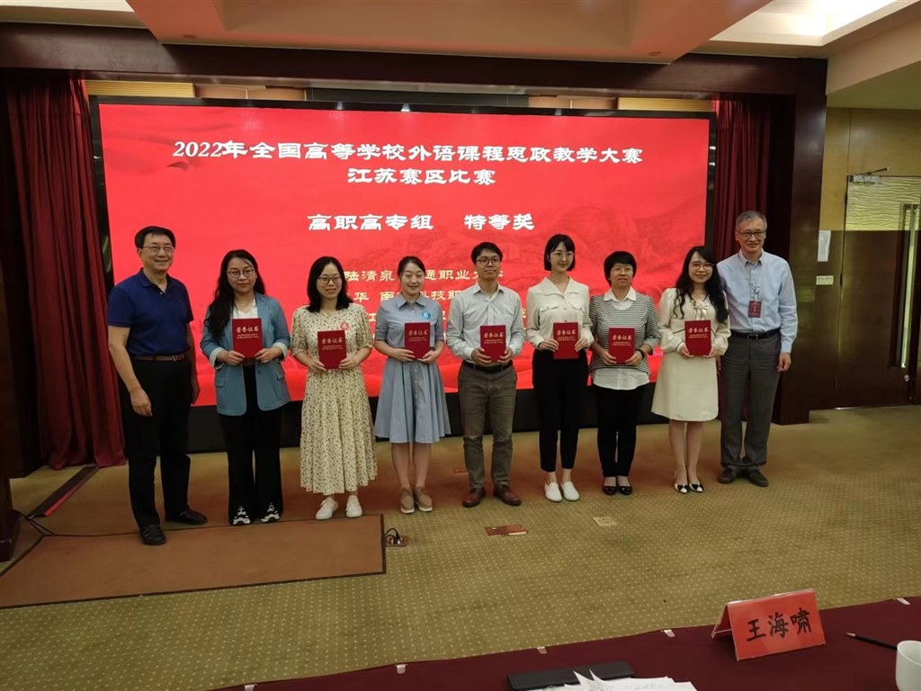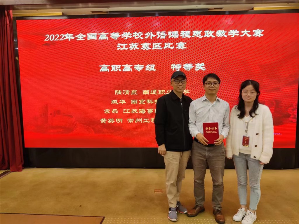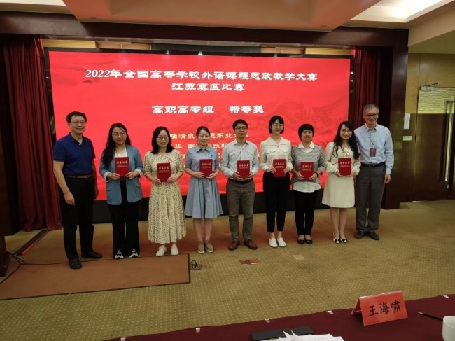 9月(yuè)29日下午,全國高等學校外語課程思政教(jiāo)學大賽江蘇賽區決賽(線(xiàn)下比(bǐ)賽)在南(nán)京鍾(zhōng)山賓館舉行。經初賽、複賽兩次選(xuǎn)拔後,共有18支代表隊進入決賽。常州工程職業技術學院通識部教師黃英明、婁立國(guó)、吳玥寧三人所(suǒ)組成的代表隊喜獲高職高專組特等獎。