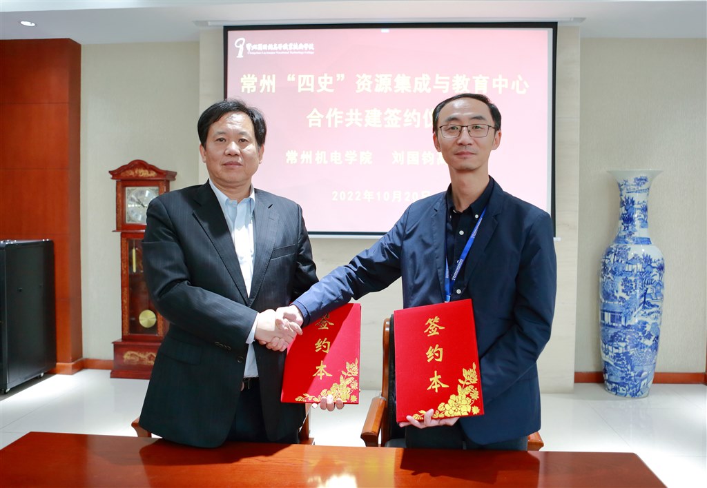 10月20日(rì),常州機電職業技術學院與(yǔ)常州劉(liú)國鈞高(gāo)等職業(yè)技術學校舉行常州“四史”集成與教育中心合作共建簽約儀式。學校黨委書記沈琳、黨委副書記朱平(píng),常州劉國鈞高等職業技術學(xué)校校長林(lín)春、黨委副書記(jì)熊青雲出席,我校黨委委員、黨辦校辦主任彭(péng)銀年,黨委委員、馬克思主學院院長(zhǎng)毛加明和馬克思主義學院部分(fèn)教師參加簽約儀式。