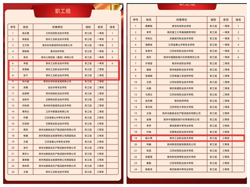 2022 年江蘇省數智財(cái)經職業技能競賽暨第三屆“財(cái)智杯”全國數智財經競賽江蘇省(shěng)賽決賽於9月24日在(zài)南京舉行。常州(zhōu)工(gōng)業職業技術學院經貿管理學院李晶(jīng)老師經過(guò)激(jī)勵比拚,在“數智(zhì)財(cái)管可視化分析師技能賽項”職工組比賽中名列全省第六,榮(róng)獲一等獎,並獲得“江蘇省技術(shù)能手”榮譽稱號,吳慧敏、張(zhāng)寧老(lǎo)師榮獲此賽項二等獎,姚少雯老師在“流程機器人(RPA)實施與運維工程師技能賽項”職工組比賽中獲三等獎。