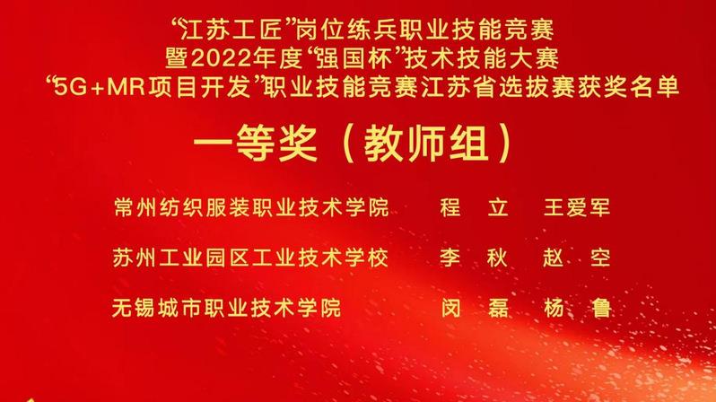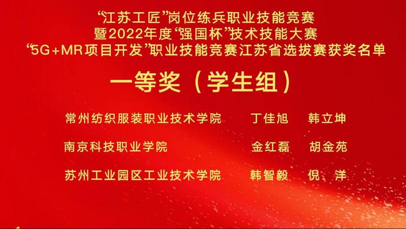 常州紡織服裝職(zhí)業技術學院師生在江蘇省5G+MR資源(yuán)開發職業技能大賽中喜獲一等(děng)獎第一名