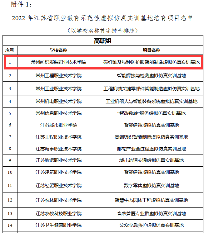 近日,江蘇省教育廳公布江蘇省示範性(xìng)虛擬仿真實訓基地培育項目(mù)名單(dān),常州紡(fǎng)織服裝職業技術學院成功獲批(pī)建設(shè)“碳纖維及特種防護服智能製造虛擬仿(fǎng)真實訓基地”。