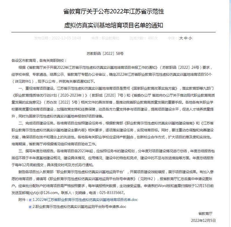 常州紡織服裝職業技術學院成功獲批“江蘇省示範性虛擬仿真實訓基地(dì)”培(péi)育項目