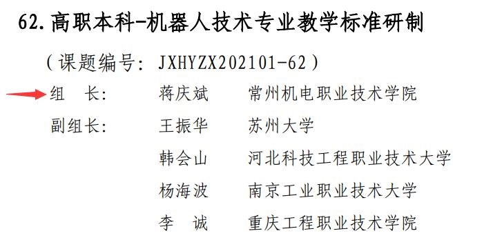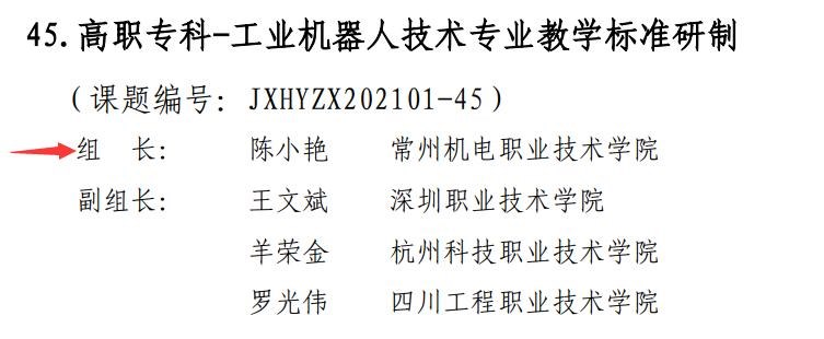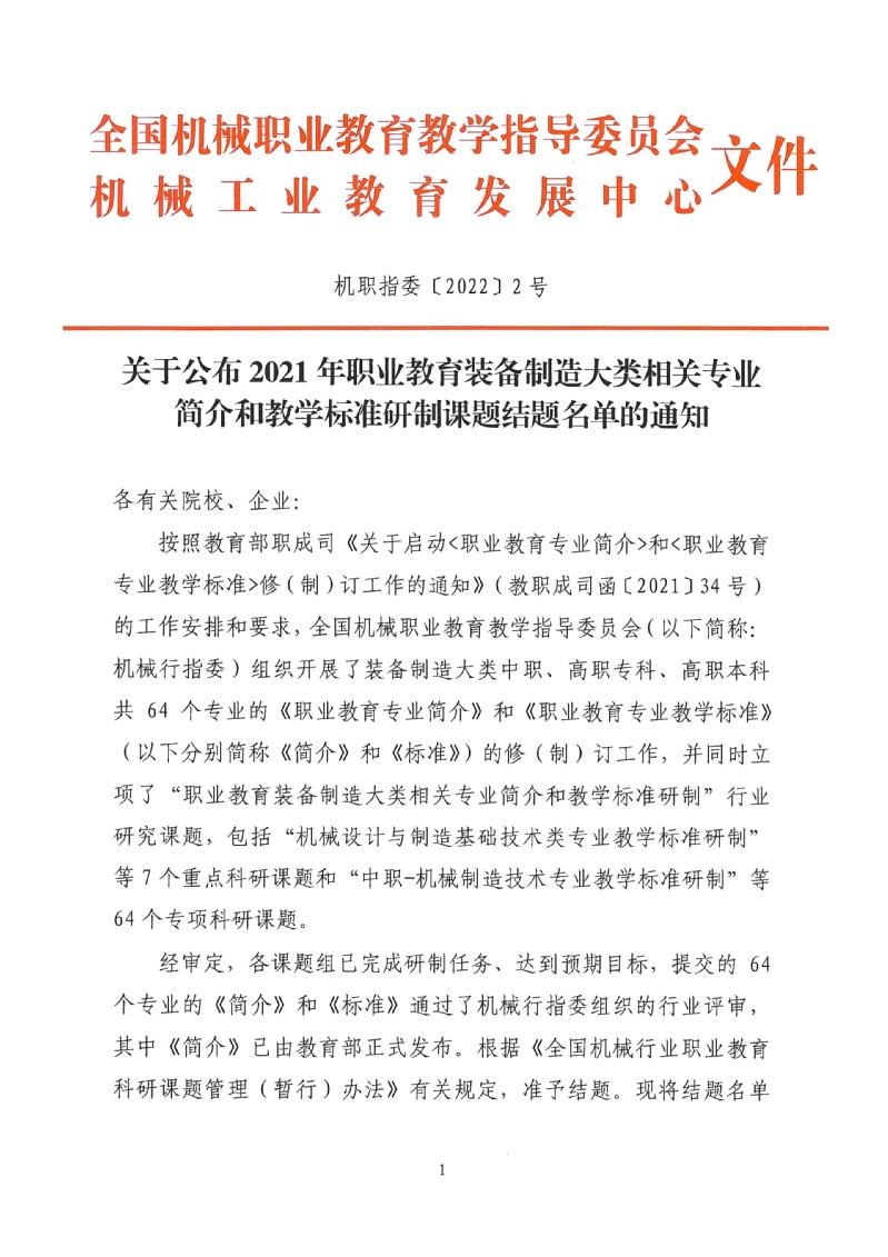 近日,全國機械職業教育教學指導委員(yuán)會印發《關於公布2021年職業教育裝備製造(zào)大類相關專業(yè)簡介和教學標(biāo)準研製課題結題(tí)名單的(de)通(tōng)知》,常州機電職業技術學院作為組長單位牽頭研製的《高職本科(kē)-智能製造工程(chéng)技術專業簡介和教學標準》(組長:許(xǔ)朝山(shān))、《高(gāo)職本科-機器人技術專業簡介(jiè)和教學標準》(組長:蔣慶斌(bīn))、《高職專科-工業設計專業簡介和教學標準》(組長:吳 榮)、《高(gāo)職專科-工業機器人技術專業簡(jiǎn)介和教(jiāo)學標準》(組長:陳小豔)等四項標準通過結題作(zuò)為副組長單位參與單位參與研製的(de)《高職本科(kē)-工業設計專業簡介和教學標(biāo)準研製》《高職專科-模具設計與製造專業簡介和教(jiāo)學標準(zhǔn)研製》《高職專科-數字化(huà)設計與(yǔ)製造技(jì)術專業簡介和教學標準研製》等20餘項教學標(biāo)準也通過結題。