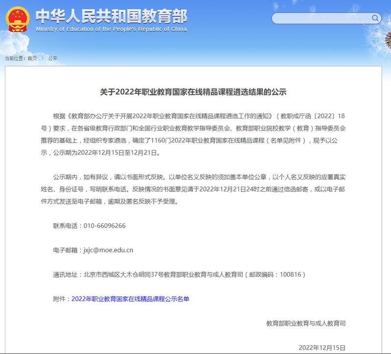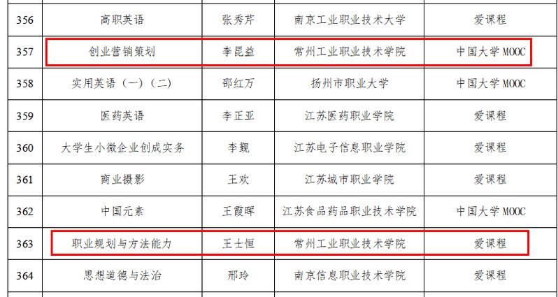 12月15日,教育部職業教育與成人教育司發布《關於2022年職業教育國家(jiā)在線精品課程遴選結果的公示》,常州工(gōng)業職(zhí)業技術學院《創業營銷策劃》和《職業規(guī)劃與方法能力》2門課程入選2022年職業教育國家在線精品課程公示名單。