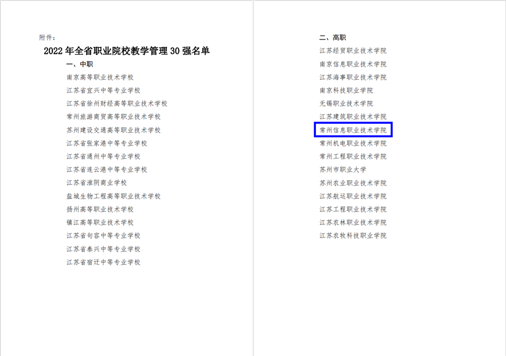 常州信(xìn)息職業技術學院榮獲2022年全省職業院校教學管(guǎn)理30強