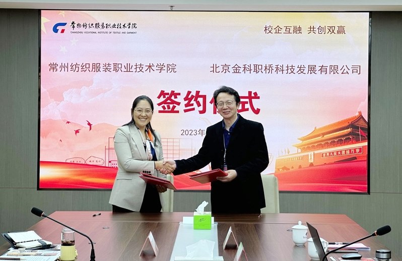 2月21日(rì),北京(jīng)金科(kē)職橋科技發展有限公司(簡稱“金融街職業教(jiāo)育”) 董事長鍾杏梅率副總(zǒng)經理於躍(yuè)、產品教研中心主任王樂玨、產教融合中心項(xiàng)目經理(lǐ)高瞻、產教融(róng)合中心(xīn)項目經(jīng)理(lǐ)黃建一行來常州紡(fǎng)織服裝職業(yè)技術學院進行交流研討,校黨委副書記、院(yuàn)長洪霄,黨委委員、副院(yuàn)長鄧(dèng)凱(kǎi),校企合作處處長李愛紅、人文學院黨總支(zhī)書記韓蘭娟、人文學院副院(yuàn)長韓瑞及專業團隊(duì)參加交流,會議(yì)由韓瑞主持(chí)。