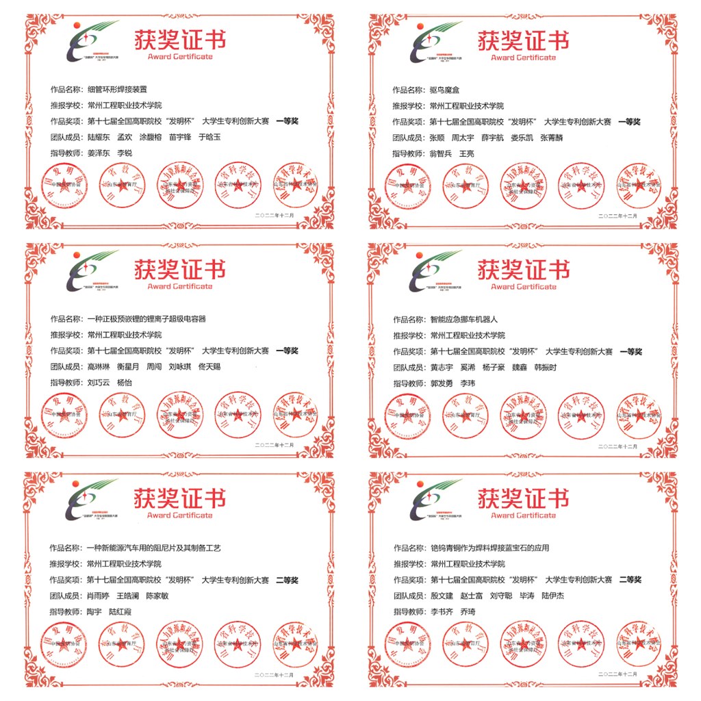常州工程職業技術學院在第十七屆“發明杯”大學生專利創新大賽中斬獲佳績