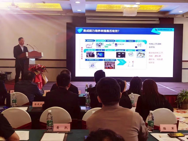 蔣慶斌作題為《人工智能背景機(jī)器人專業人(rén)才培養的(de)思考》的報告。