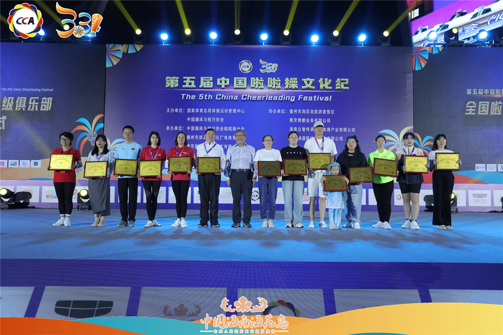 近日,第五屆中國啦啦(lā)操文(wén)化紀在海南儋州海(hǎi)花島國際(jì)會展(zhǎn)中心隆(lóng)重開幕,來自全國200多個城市的近2400多名啦啦操代表共襄盛典。體育總局青少司發展指導處處長(zhǎng)徐傑、體育總局體操中心副主任馮玉娟、海南省文化旅遊廣電(diàn)體(tǐ)育(yù)廳副廳長楊新利、國際(jì)啦啦操聯合(hé)會(huì)秘書(shū)長Karl Olson、香(xiāng)港(gǎng)啦啦操(cāo)協會會長殷浩然、央視知名主持人韓喬生(shēng)、排球奧運冠軍徐雲(yún)麗、蹦(bèng)床奧運(yùn)冠軍陸春龍等出席(xí)了本次啦啦操文化紀活動。大會(huì)表彰(zhāng)了各類獎項獲獎(jiǎng)單位,常州信息職業技術學院榮獲全國啦啦操優秀組織獎,並晉升為全(quán)國啦啦操二星級俱樂部,分別為江蘇省大中小(xiǎo)學及培訓機構的1/38和1/50。本次獲獎既是一份榮耀(yào),更是(shì)一份責任,體育部(bù)會秉持初心,繼(jì)續努力,爭取獲得更高榮譽。
