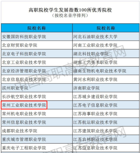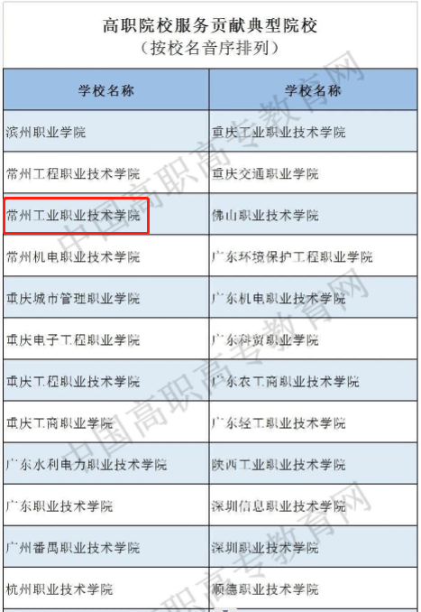 常州工(gōng)業職(zhí)業技術學院入選全國高職(zhí)院校服務貢獻典型院校和學生發展指數優秀院校
