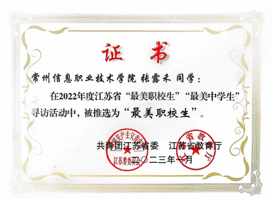 近日(rì),共青團江(jiāng)蘇省委和省教育廳聯合開展的2022年度江蘇省“最美職校生”尋訪活動(dòng)結果揭(jiē)曉。 常州信息職業技術學院(yuàn)劉鶴同同學獲江蘇省“最美職校生標兵”榮譽稱(chēng)號,張露禾、王陽同學獲江蘇省“最美職(zhí)校生”榮譽(yù)稱號。