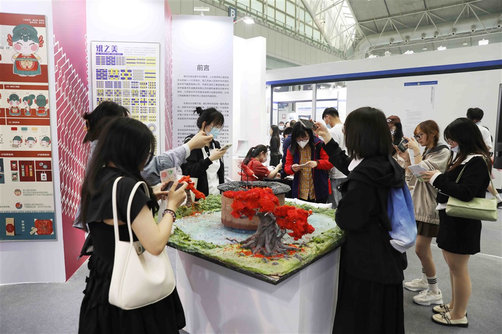 紫金(jīn)獎·中國(guó)(南京)大學生設計展為全國高(gāo)校展示美育教學最新成(chéng)果提供高品質平台,現在已成為(wéi)全國規模最大、最具影響的大學生創意設計展(zhǎn)會品牌。本屆展會由中(zhōng)國高等教育學會指(zhǐ)導,江蘇省委宣傳部、江蘇省教育(yù)廳、江蘇省(shěng)人民政府(fǔ)台灣事務辦(bàn)公室(shì)、江蘇省人民政府港澳事(shì)務辦公室聯合主辦,江蘇省廣播電視總台承(chéng)辦。與(yǔ)上屆設計展相比,本(běn)屆展會內容更豐富、服(fú)務社會更(gèng)深入、觀展體驗更立體。線上線下同步辦展。據悉,開展當天已有全國(guó)各地師生和設計美學粉絲近萬人現場觀(guān)展。(通訊員/高婧 審(shěn)核/安寧 編輯/莊媛)