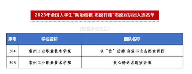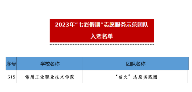 為深入學(xué)習宣傳貫徹習近平新時代中國特色社會主義思想和(hé)黨的(de)二十大精神,落實“強國複興有我”群眾性主題宣傳教育相關要求,團中央青年誌願者行(háng)動(dòng)指導中心聯合國家疾病預防控製局傳染病防控司、全國青少年井岡山革命傳統教育(yù)基地、中國青年誌願者協會(huì)分類遴選了全國大學生誌(zhì)願服務示範宣講團,常州工業職業技術學院多支宣講團入選。名單如下(xià):