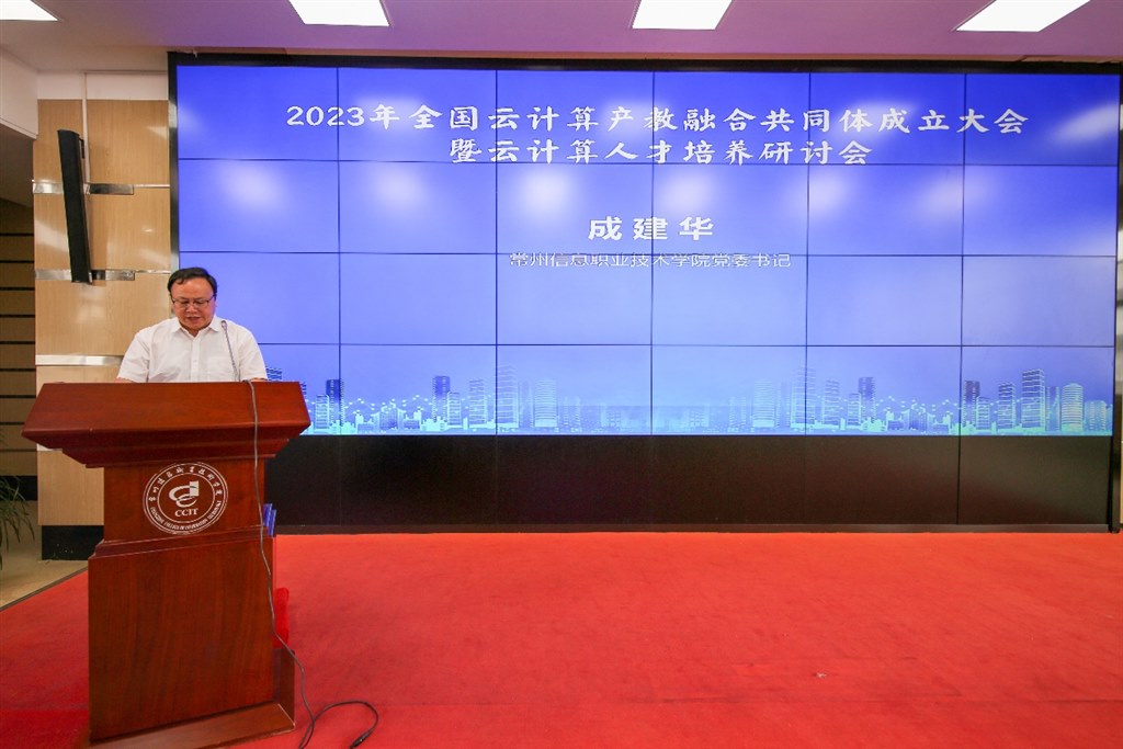 成建(jiàn)華代表學校致辭,對參會的各位領導(dǎo)、嘉賓表示歡迎。他向與會嘉賓介(jiè)紹了學校改革發展情況,表示學校將以此次全國雲計(jì)算產(chǎn)教(jiāo)融合(hé)共同體成立大會為契機,深化產教融合、校企合作,持續探索與不同地區的政、行、校(xiào)、企各方(fāng)共建校企合作命運共同體的體製機(jī)製,引領人才培養範式變革,促進教育鏈、人才鏈與產業鏈、創新鏈有效銜接,推動辦學治校開辟新境界、創造新業績,不斷為職業教育服務國家高(gāo)質量發展展現(xiàn)“常信擔(dān)當”。