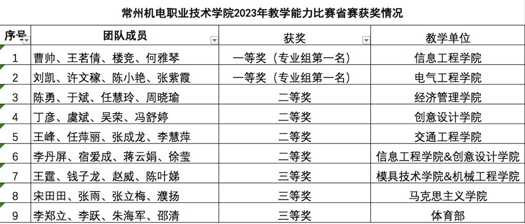 8月1日,2023年江(jiāng)蘇省職業院校教學(xué)能(néng)力比賽落下(xià)帷幕,根據江蘇省教育廳發布的擬獲獎名單公示,常州機電職業技術學院獲一等獎2項、二等獎4項、三等獎3項(xiàng)。