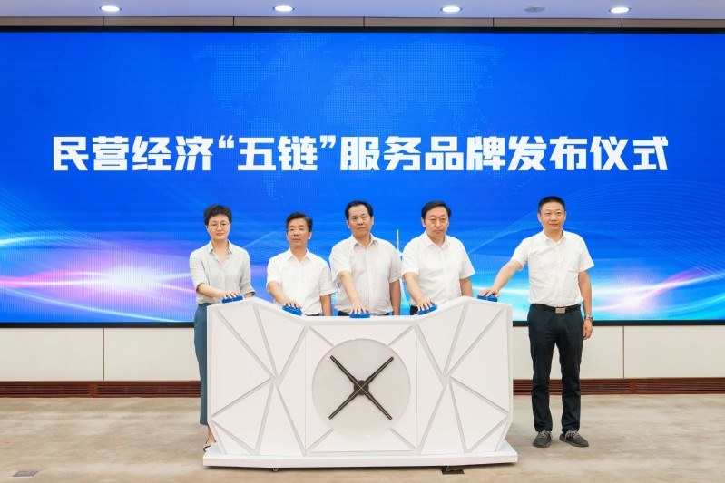 沈琳與趙天晟、朱小(xiǎo)平(píng)、沈濤、桑遙(yáo)共同發(fā)布了湖塘鎮民營經濟“五鏈(liàn)”服務(wù)品牌項目。