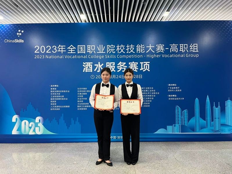 8月24-28日(rì),全國職業(yè)院(yuàn)校技能大賽“酒水(shuǐ)服務”賽項學生組在深圳職業技術大學開賽,來自全國各省(shěng)、自治區、直(zhí)轄市的60支代表隊(duì)參賽。常州工業職業技術學院周麗、陳純老師指導的顧嫻和劉夢潔兩位選手以優異成(chéng)績獲得該賽項的二等獎,實現旅遊與康養學院在(zài)全國職業院(yuàn)校技能大賽賽(sài)項的曆史性突(tū)破。