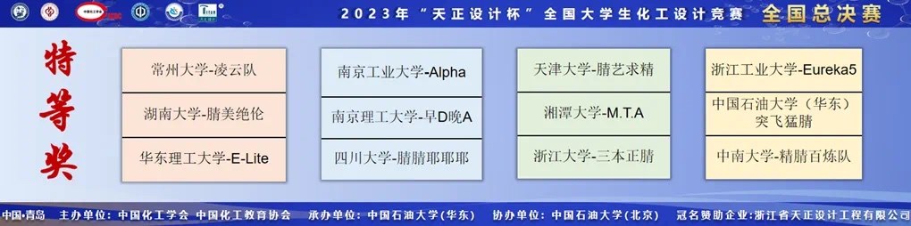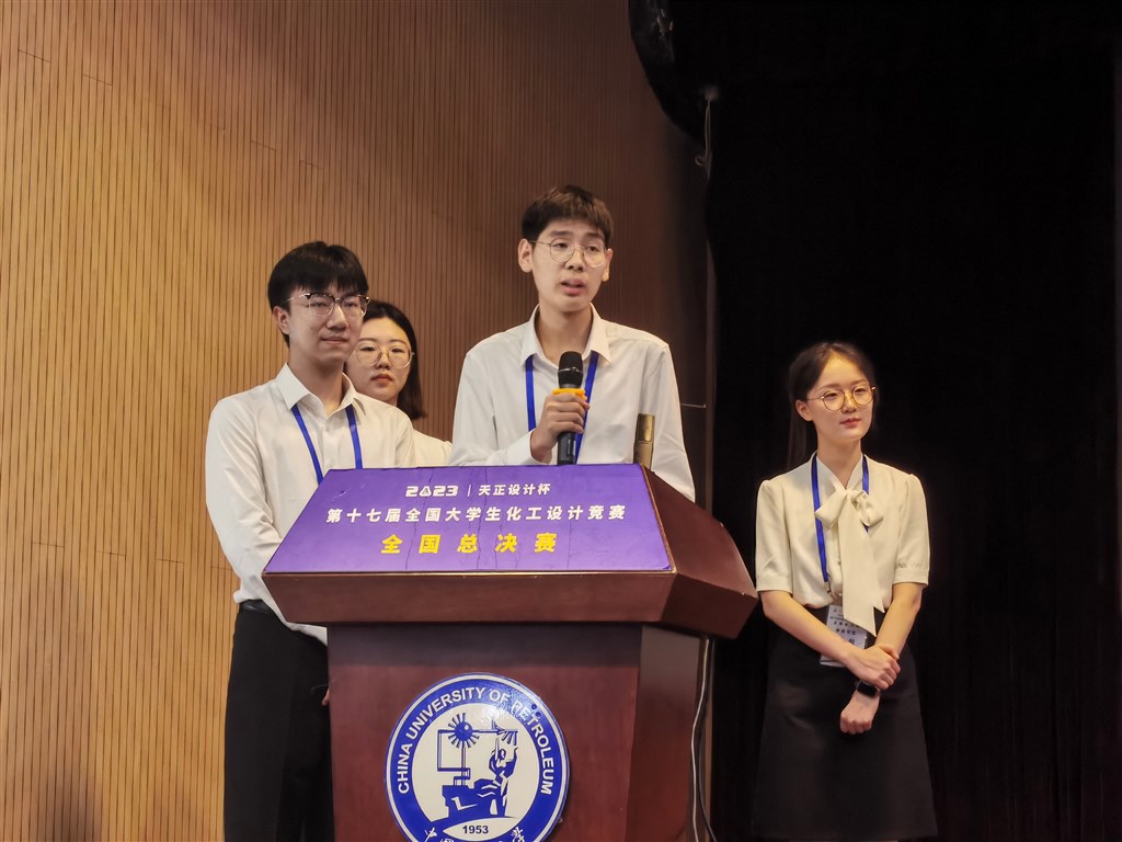 8月16日至8月22日(rì),2023年“天正設計杯”第十七屆全國大學生化工設計競賽總決賽(sài)在中(zhōng)國石油大學(華東)舉行(háng)。常州大學(xué)石油化工學院淩雲隊作品《中國石油吉林石化分公司(sī)年產12萬(wàn)噸己二腈項目》(參賽隊員:朱煥(huàn)傑、高傑(jié)、李夢露、唐一航、李欣庭;指導老師:周滿、馬江權、黎珊、侯濤、鍾璟)經過江(jiāng)蘇省省賽、華東賽區選拔賽以及全國總決賽的激烈角逐,斬獲第(dì)十(shí)七屆全國大學生化工設(shè)計競賽特等獎,並獲得“設(shè)計文(wén)檔(dàng)質量優秀獎”的好成績。