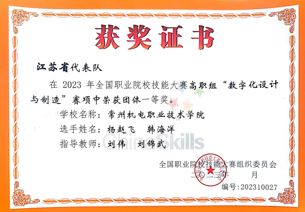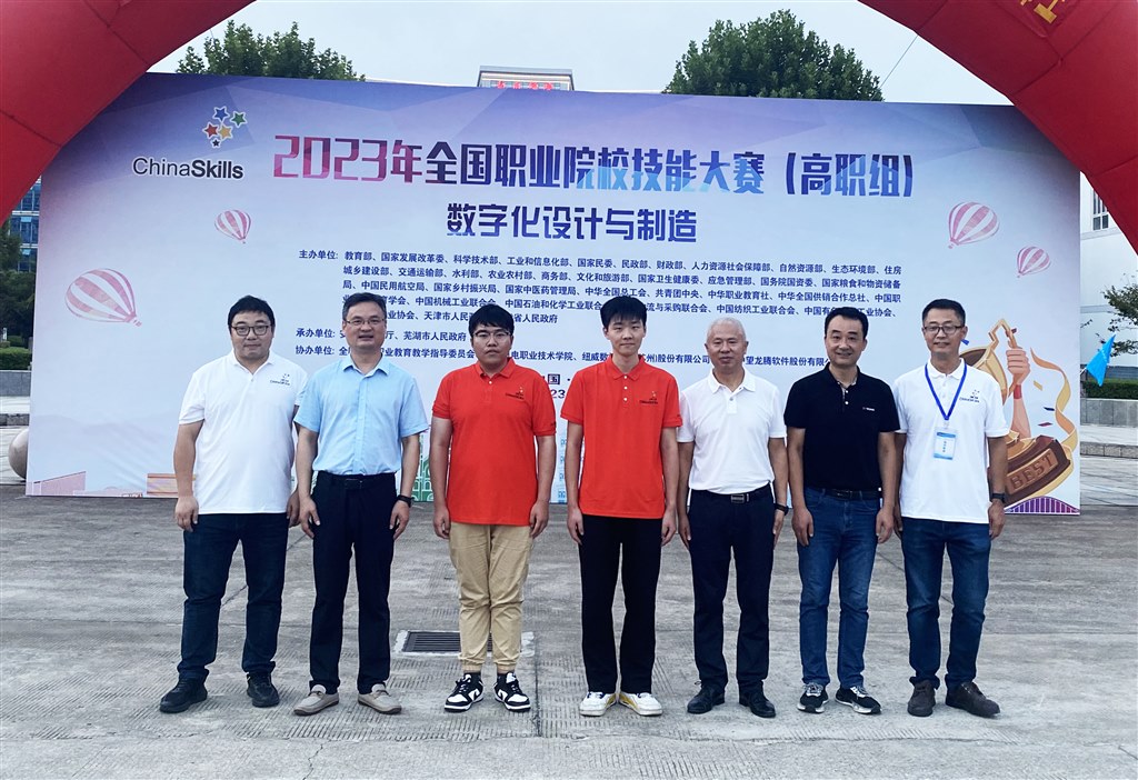9月5日—7日,2023年全國職業院校技能大賽(高職組)“數字化(huà)設計與製造”賽項(xiàng)在安徽機電職業技術學(xué)院舉行,來自全國各省、直轄市、自(zì)治區以及新疆生產建設兵團的(de)74支代表隊參加比(bǐ)賽。常州機電(diàn)職業技術學院機械工(gōng)程學院院(yuàn)長劉江(jiāng)領隊,劉偉、劉錦武兩位老師指(zhǐ)導,楊趙飛、韓海洋(yáng)組成的團隊獲得學生組賽項一等獎。指(zhǐ)導教師劉偉、劉錦武獲得“優秀指導教(jiāo)師”稱號。