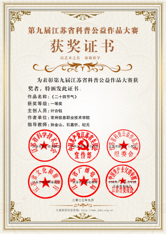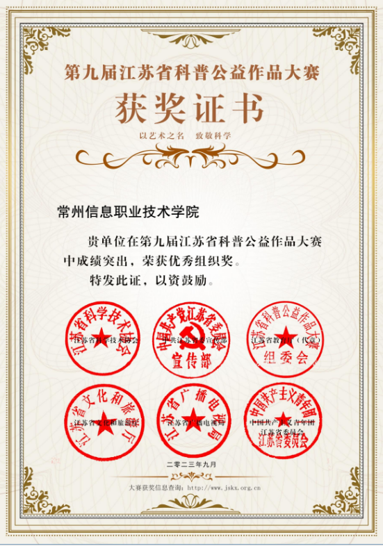 近日,由江蘇省委宣傳部、省科(kē)協、省教育廳(tīng)、省(shěng)文化和旅遊廳、省廣播電視局、團省委主辦(bàn)的第九屆江蘇省科普公益作品大賽獲獎作品揭曉。常州信息(xī)職業(yè)技術學院從來自全(quán)國20餘(yú)省市的8332件作(zuò)品(pǐn)中脫穎而出,一舉摘得一等獎三項,收獲曆史(shǐ)性突破。