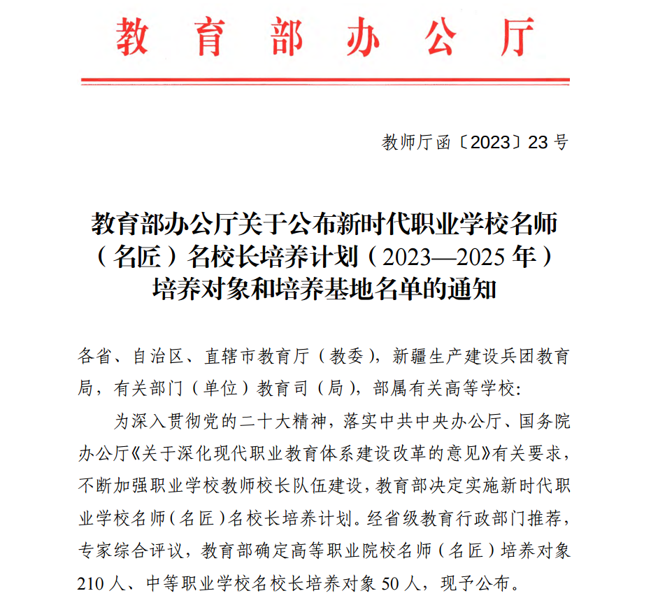 近日,教育部辦(bàn)公廳下發《關於公布新時代職業學校名師(shī)(名匠)名校長培養計劃(2023-2025年)培養對象和培養(yǎng)基地名單(dān)的通知(zhī)》(教師廳函〔2023〕23號),教育部確定高等職業院校名師(名(míng)匠)培養對象210人,常州工程職業技術學院李雄威教授成功入選高等職(zhí)業院(yuàn)校名師(名匠)培養對(duì)象。