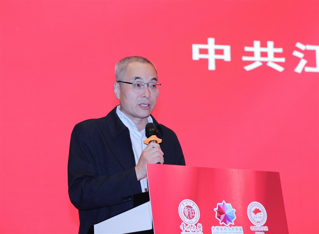 新華日報社新華傳媒智庫綜合外(wài)聯工(gōng)作室主任(rèn)章海粟(sù)宣讀新華日(rì)報社新華傳媒智庫賀信(xìn)