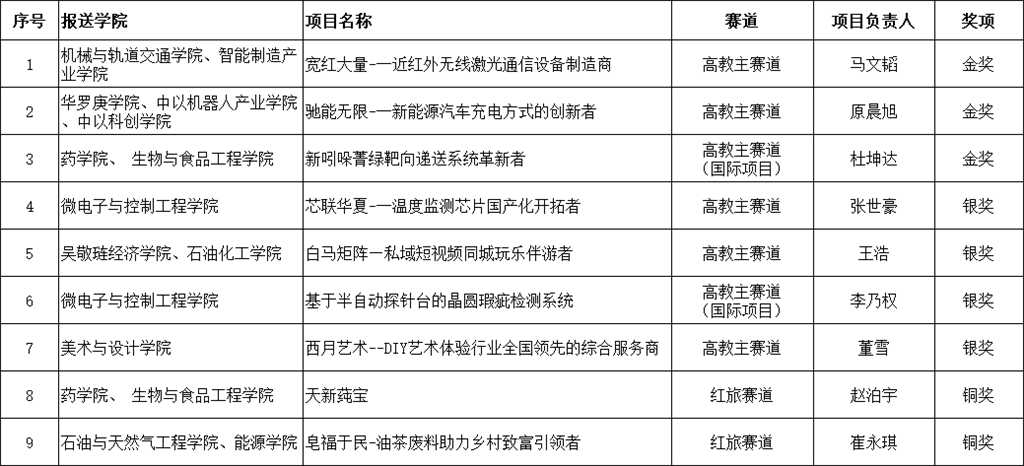 12月3日至6日,中國(guó)國際大學生創新大賽(2023)在天津大學(xué)舉行。常州大學學子經過層層(céng)角逐,獲國賽金獎3項,銀獎4項,銅獎2項。其中高教主賽道(dào)金獎(jiǎng)2項,銀獎(jiǎng)3項,銅獎2項;高教主賽道國際項目金獎1項,銀獎1項,首次獲得(dé)高教主賽(sài)道本科生創意組金獎、國際項目金獎,金獎總數、獲獎總數再創新高(gāo)!