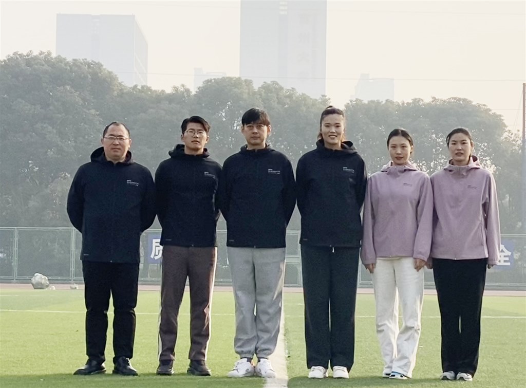 徐正旭(左一)、邰銳(左(zuǒ)二)、胡戈(左三)、毛雯(右三)、王嘉雪(xuě)(右(yòu)二(èr))、沈陽(右一)在江蘇省第二屆高校體育教師教學基本功大賽中(zhōng)斬獲佳績