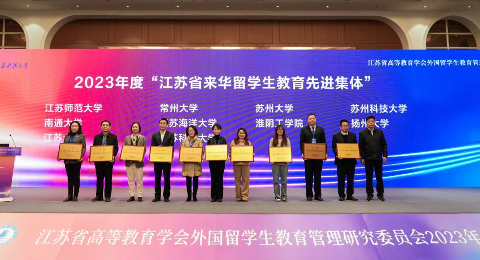 近日,江蘇省高等教育學會外(wài)國(guó)留學生教育(yù)管理研究委員會2023年年會(huì)在鎮江召開。常州大學再次獲評“江蘇(sū)省來華留學生教育先進集(jí)體”,這是學校第(dì)6次獲此榮譽(yù)。學校王永老師獲評“江蘇省外國(guó)留學生教育管理先進個人”,鄭(zhèng)偉老師獲評“江蘇省優秀留學生輔導員”。