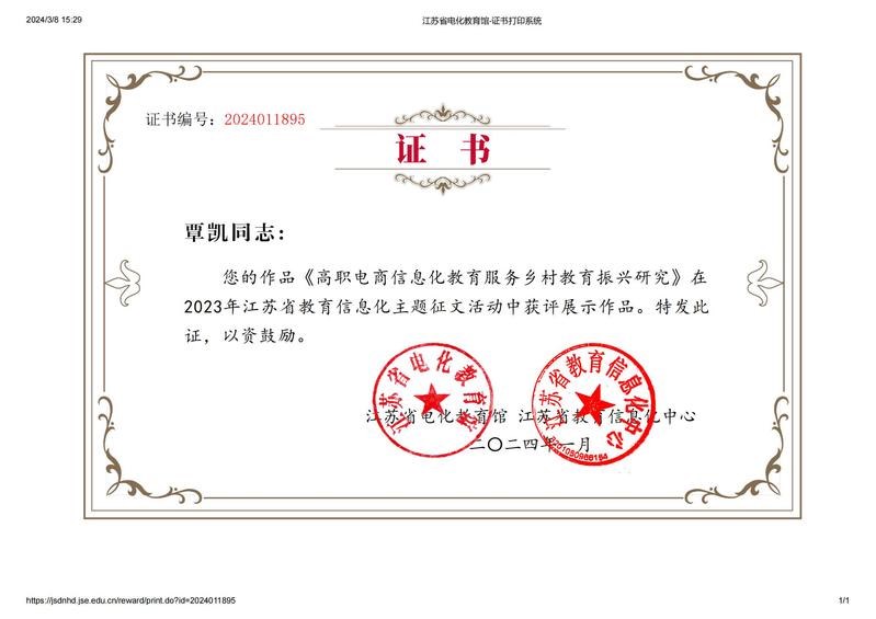 近日,江蘇省(shěng)電化教育(yù)館、江蘇省(shěng)教育信息化中心公布了2023年江蘇省教育信息化主題征文活動(dòng)獲獎名單,常州紡織服裝職(zhí)業技術學院信息服務中(zhōng)心陳曄老師的作品《校園網(wǎng)SDN網絡架構(gòu)下應用層DDos攻擊分類及檢測方法研究》獲評“創新作(zuò)品”、吳衛東老師的作品《智慧教室場景下課堂教學研究(jiū)》獲評“展示(shì)作品”,數字與商貿學(xué)院覃凱老師的作品(pǐn)《高職電商信息化教育(yù)服務鄉(xiāng)村教育振興研究》獲評“展示作品”。