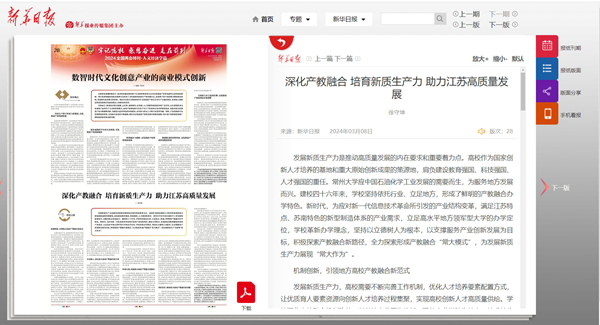 《新華日報》“2024全(quán)國兩會特刊”專題刊發常州大學黨委書記徐守坤教授署名文章《深化產教融(róng)合(hé) 培育新質生產力(lì) 助力江蘇高質量發展》
