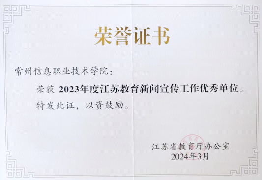 近日,江(jiāng)蘇省教育廳辦公室發布了(le)《關於表揚2023年度江蘇教育新聞宣傳工作優秀單位的通知》,常州信息職業技術學院獲評2023年度江蘇教育新聞宣傳工作優秀(xiù)單位。