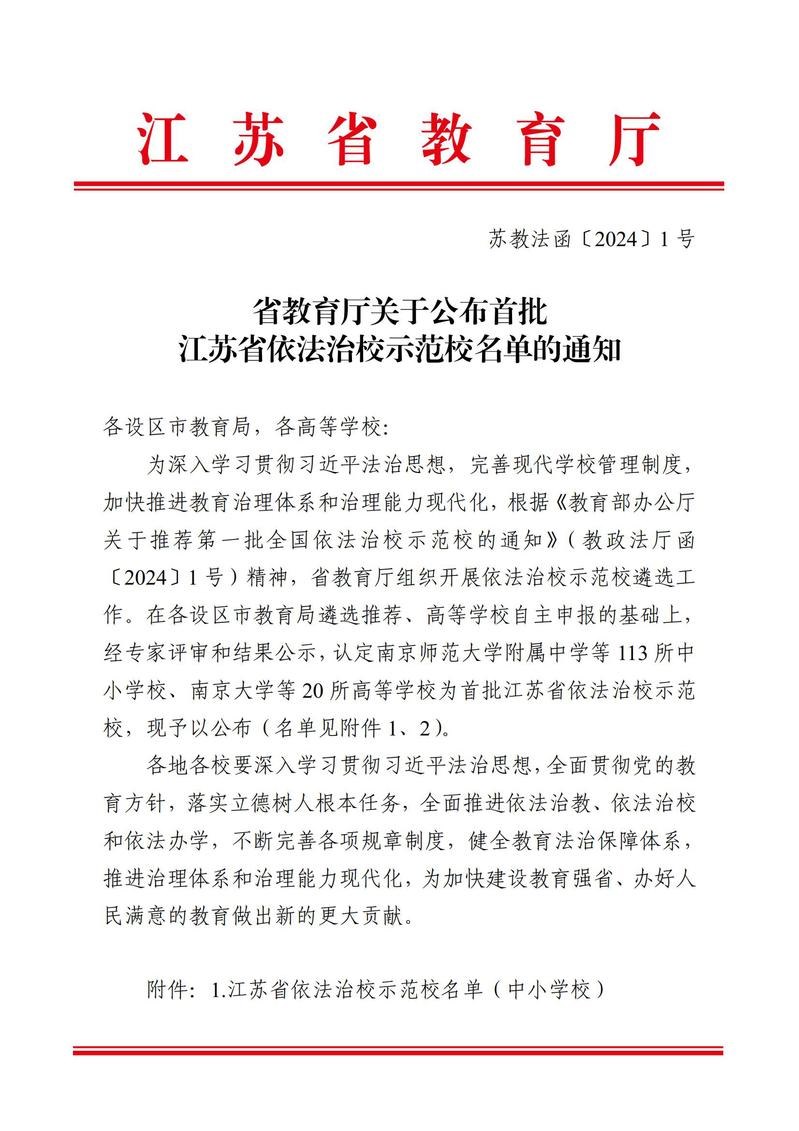 本輪評選工作由江蘇省教育廳(tīng)根據《教育部辦公廳關於推薦第一批全國依法(fǎ)治校示範校的通知》精神組織開展,經(jīng)專家(jiā)評審和結果公示,認定20所高等學校為首批(pī)江蘇省依法治校示範校,工業位列其中。