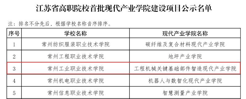 常州工業職業技術學院工程機械關鍵基礎部件智造現代產業學院成功(gōng)入選江蘇省首(shǒu)批現代產業學院
